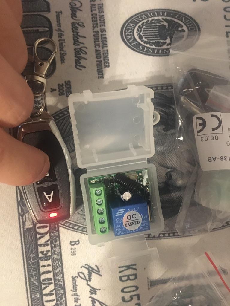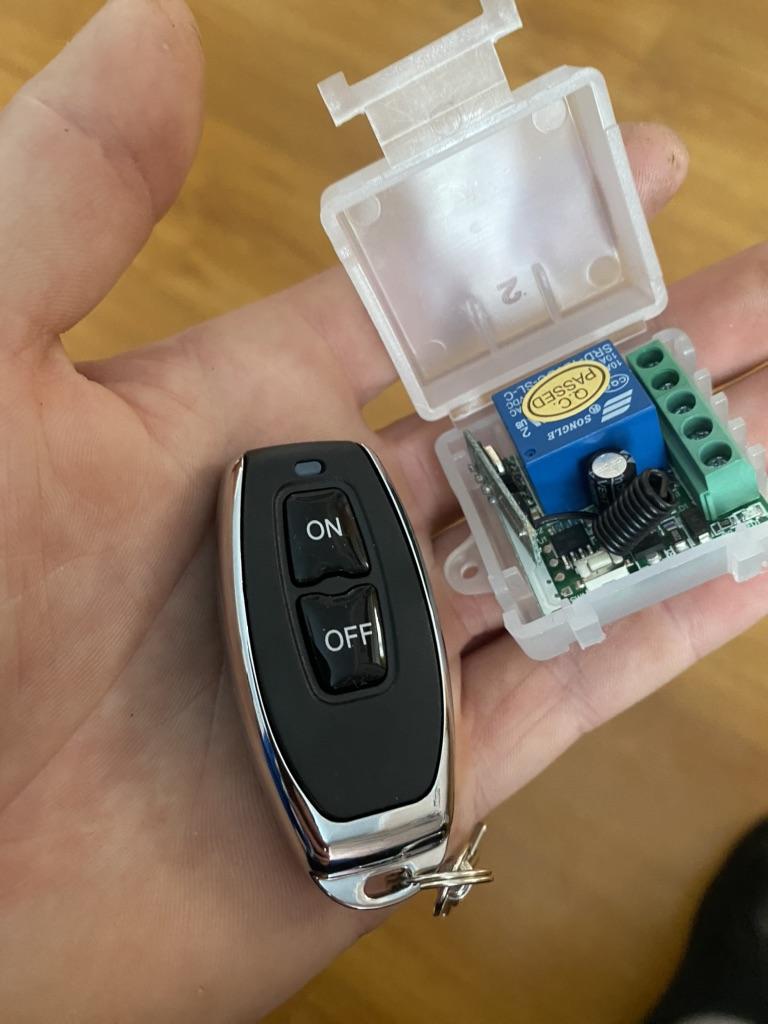 Zamówienie dotarło. Opakowanie na zdjęciu. Pilot z baterią. Po naciśnięciu przycisków zapala się dioda LED. Ale czy sam włącznik działa w parze z pilotem (Czy to nie była tylko zabawka, nie wiadomo?!) nie zostało jeszcze sprawdzone. Dodam recenzję w trakcie.