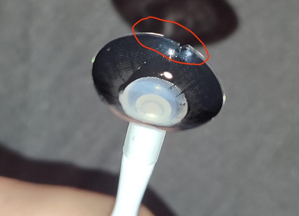 podwójna warstwa silikonu na jednej soczewce, trzeba było wyrzucić
