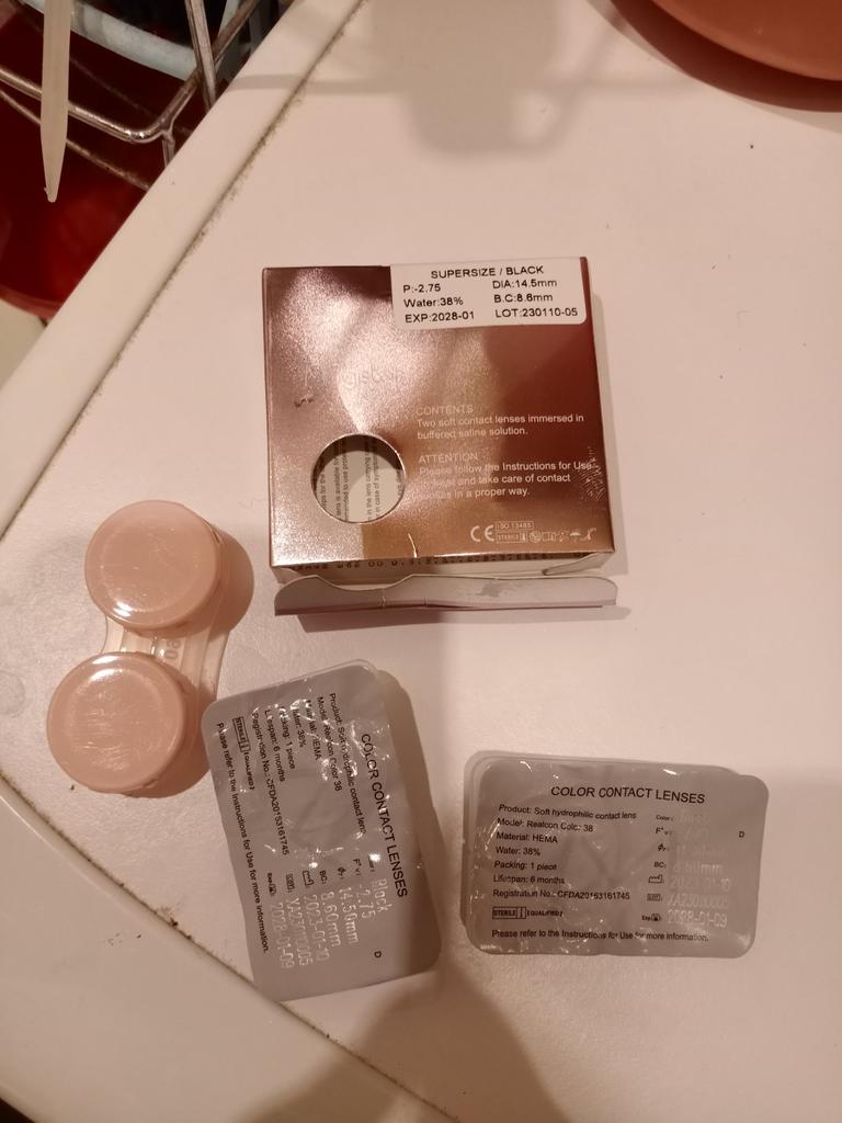 Topowe soczewki 🖤 Kupiłem 16 mm, bardzo trudno było je włożyć, to moje pierwsze soczewki Pojemnik był razem z soczewkami Nie czuć ich na oczach i ogólnie są super 🖤🖤🖤