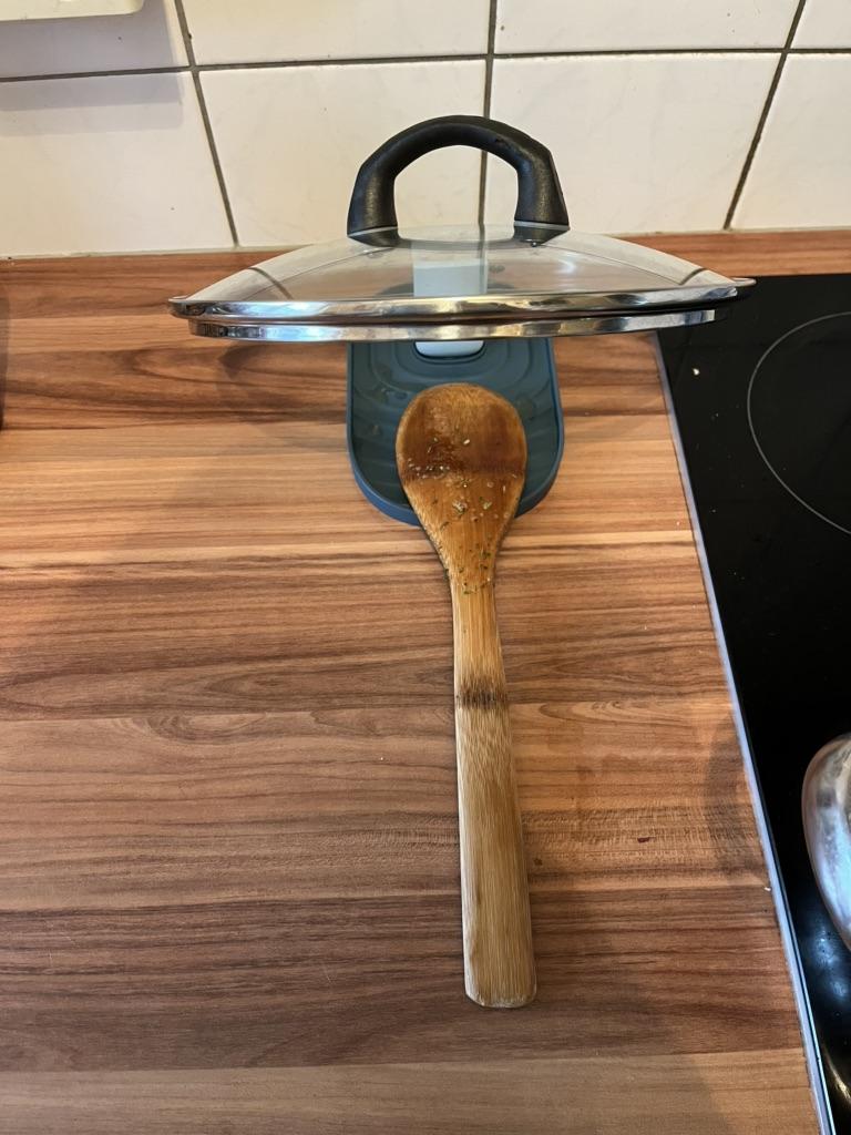 Kto nie zna problemu? Podczas gotowania nigdy nie wiesz, gdzie odłożyć łyżki lub pokrywkę garnka. Nieuchronnie chowasz wszystko. To już za mną! Dzięki temu praktycznemu uchwytowi, który można nawet złożyć, jestem teraz doskonale wyposażony! Wysyłka trwała 3 tygodnie.