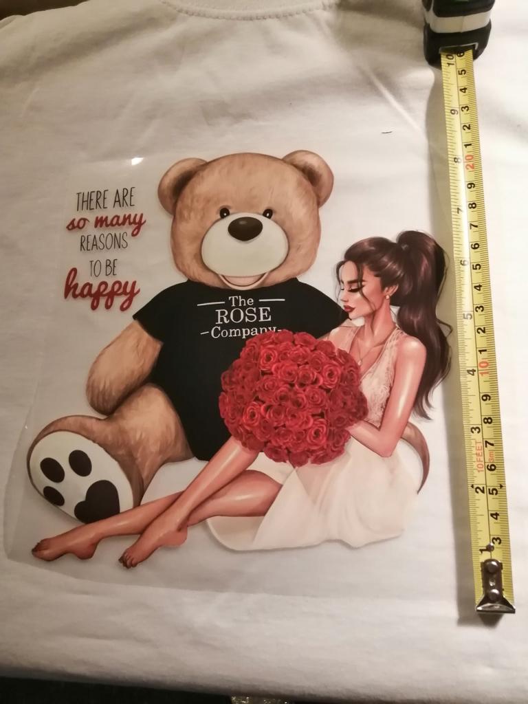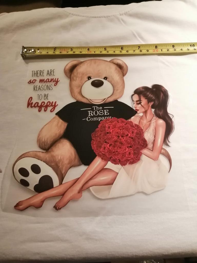 Piękna naklejka. Przyklejenie jej na bawełnianą koszulkę zajęło kilka minut, nie jest to takie łatwe jak piszą. Po upraniu wciąż wygląda jak nowe. Polecam!!!