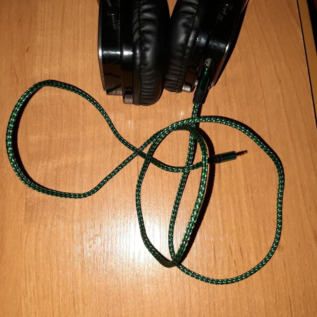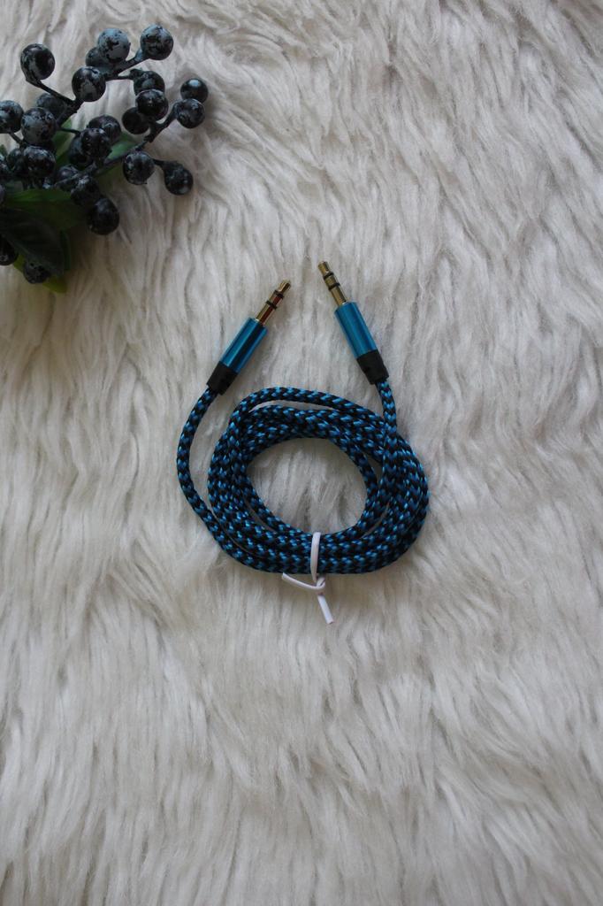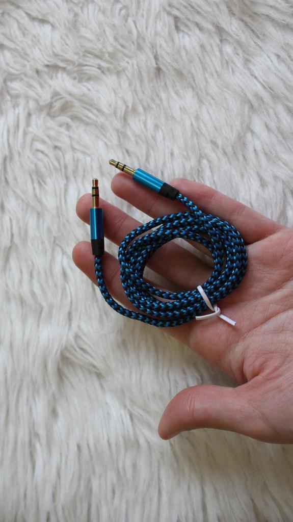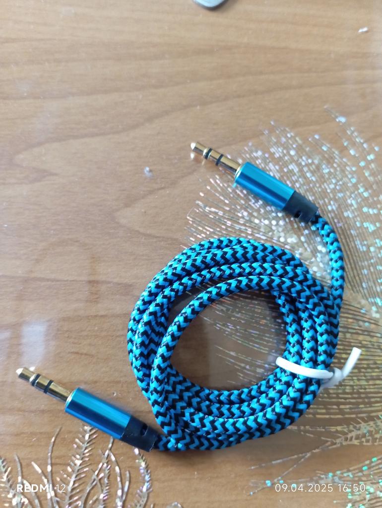 Podwójny kabel Kabel do łączenia urządzeń. Długość 1 m. Grubość 3,5 mm. Dotarł cały, kabel sprawny. Bardzo lubię tego typu sznurki, wydają mi się trwalsze.