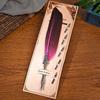 Wielokolorowy Vintage Creative Feather Pen Stalówka Rzeźbione Korpus Kwiatowy Okrągły Dip Water Pen Student Pen