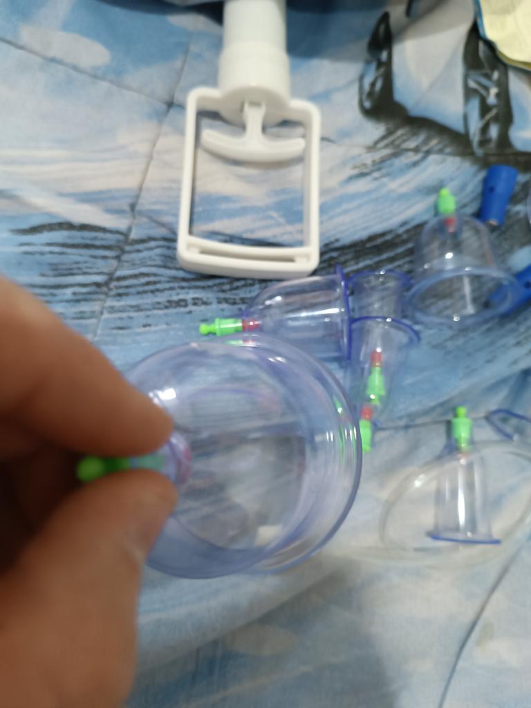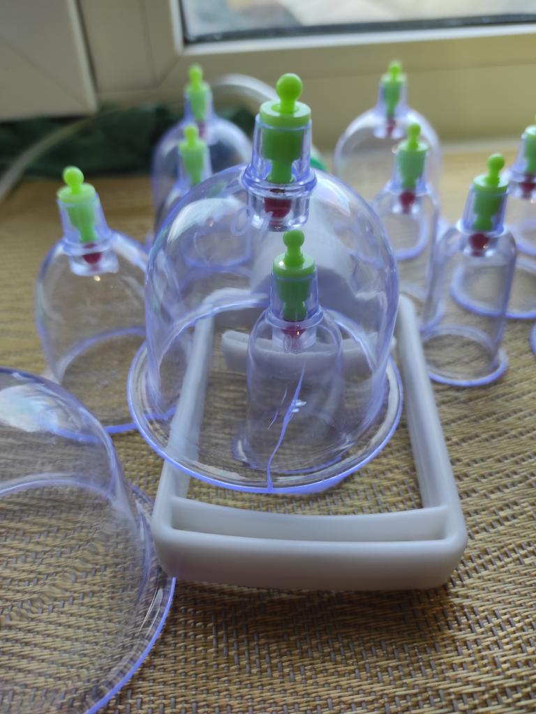 Słoiczki dotarły w całości, bezpiecznie zapakowane w pudełko i torebkę bąbelkową (chociaż wyglądało to tak, jakby wszystko było połamane). Banki wykonane z dość grubego plastiku, wygodne w użyciu. Zamówiłam dla męża, który ma problemy z plecami, w praktyce czułam, że słoiczki pomagają, więc uznaliśmy, że coś takiego jest nam w domu potrzebne. Wielkość słoików z zestawu: 2 kawałki - średnica zewnętrzna 67 mm, wewnętrzna 55 mm. 2 kawałki - średnica zewnętrzna 60 mm, wewnętrzna 48 mm. 2 kawałki - średnica zewnętrzna 53 mm, wewnętrzna 40 mm. 2 kawałki - średnica zewnętrzna 45 mm, wewnętrzna 32 mm. 4 części - średnica zewnętrzna 35 mm, wewnętrzna 25 mm. Życzę wszystkim zdrowia i spokojnego nieba nad głową ❤