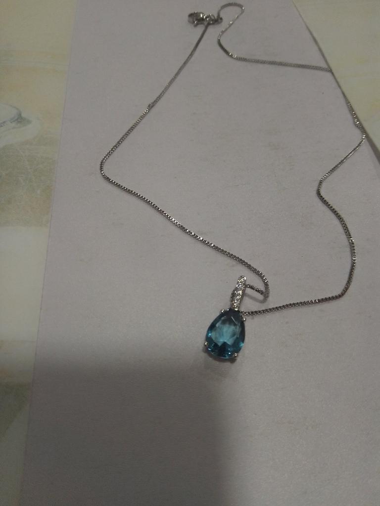 Elegancki srebrny naszyjnik z zawieszką w kształcie kropli wody 💙 Uwielbiam ten naszyjnik od Lindon! Jest naprawdę piękny. Jakość jest znakomita, wykonany z prawdziwego srebra. Z tyłu wisiorka i na samym naszyjniku znajduje się metka S925. Ma duży kamień szafirowy i 5 małych cyrkonii w rzędzie nad nim. Otrzymałem paczkę w 27 dni do domu. Polecam 👍👍 ‼️ EDYCJA ‼️ Właśnie sprawdziłam autentyczność małym magnesem i zarówno naszyjnik, jak i wisior wydają się do niego przyciągać. Oznacza to, że NIE jest to prawdziwe srebro. Prawdopodobnie jest to stop metali z niewielką warstwą srebra na wierzchu. Jest ładny, ale nie powinni reklamować tego produktu jako prawdziwego srebra 😣