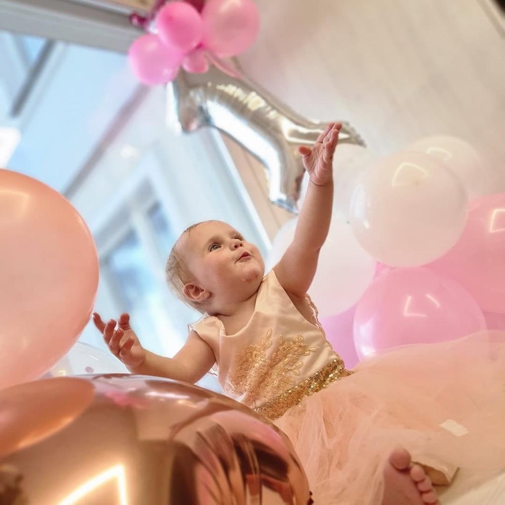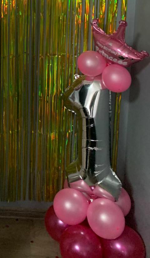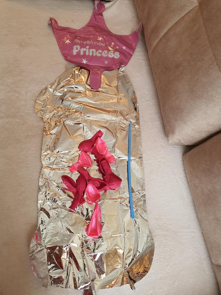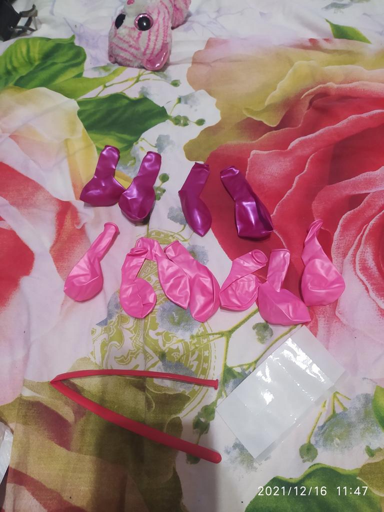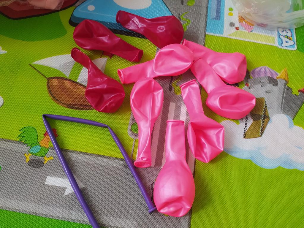 Jedna różowa kulka jest przebita, reszta to małe cele. Planuję wysadzić numer i koronę na urodziny.