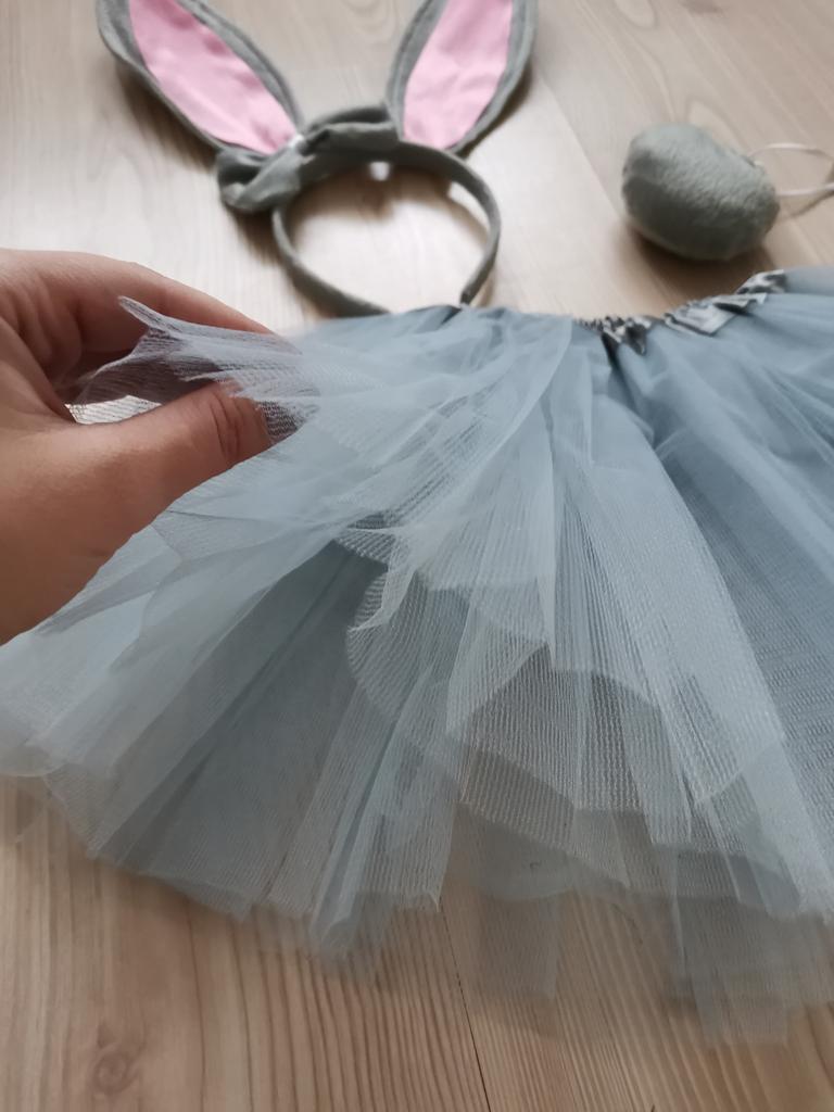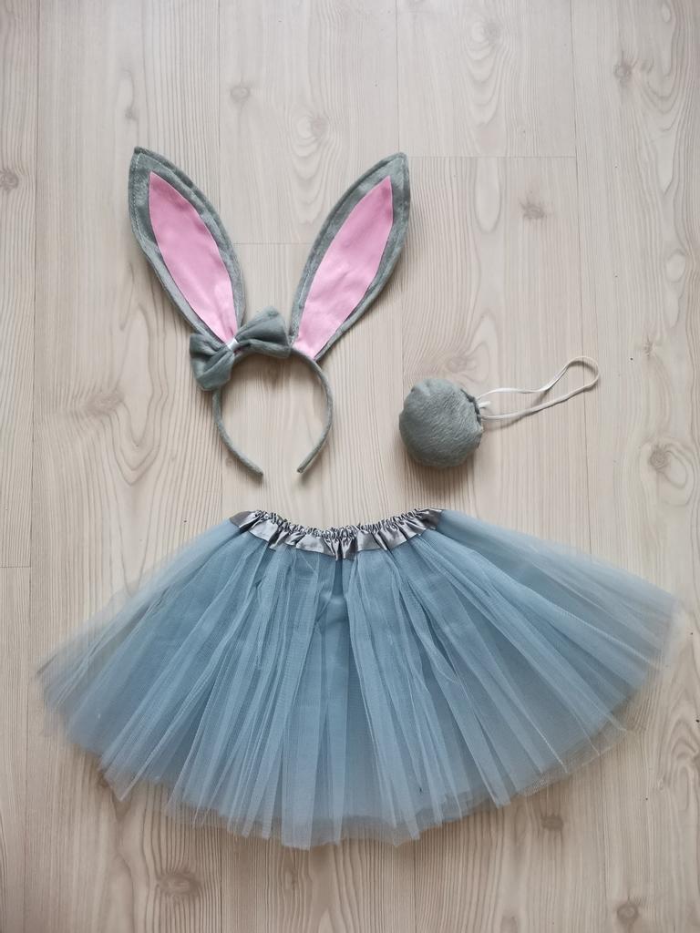Uszy królika są okablowane, dzięki czemu można je zgiąć, bardzo urocze w noszeniu. Zarówno ogon, jak i muszka z elastycznym paskiem.