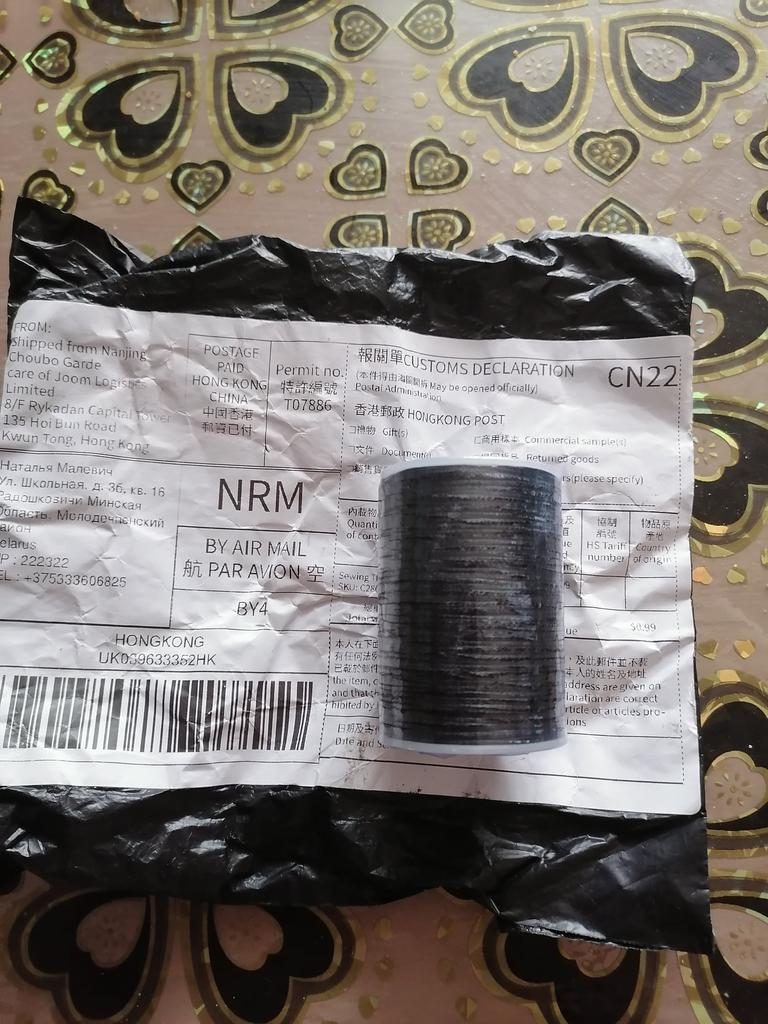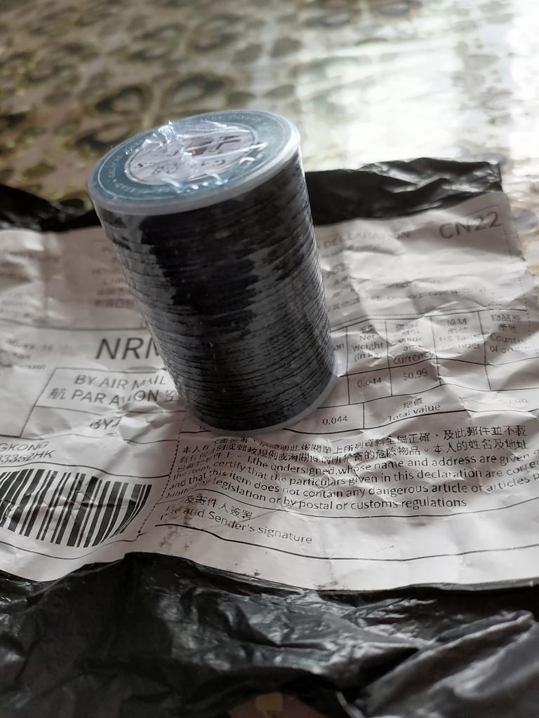 Woskowana nić do szycia szarej skóry. Często kupuję u tego sprzedawcy, ponieważ ich nici są bardzo dobrej jakości. Dotarła do Hiszpanii w niecały miesiąc 🇪🇸. Dziękuję Joom
