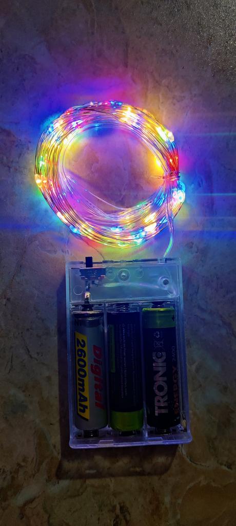 Girlanda noworoczna 🎄. 💥 Po prostu zapakowane w przezroczystą torbę. Działa na trzech bateriach AA. Nie są uwzględnione. 💥 Wielokolorowe diody LED rozmieszczone są na drucie co 10 cm. Całkowita długość girlandy to 5 m zgodnie z opisem. 💥 Wygląda bardzo jasno i świątecznie. Bardzo zadowolony z zakupu 👍! Życzę wszystkim samych udanych zakupów 🛍️!💋💋💋