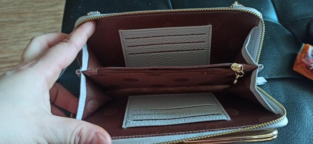 Złote elementy są okropne. Ale poza tym torba jest bardzo dobra. Mam Ulefone 9P, który po prostu mieści się w torbie. Jest miejsce na pieniądze i ważne karty. A co najważniejsze, opaska ma wreszcie przyzwoitą długość, którą można zawiesić na szyi. W wielu torebkach, które wcześniej zamówiłem, pasek jest zdecydowanie za krótki.