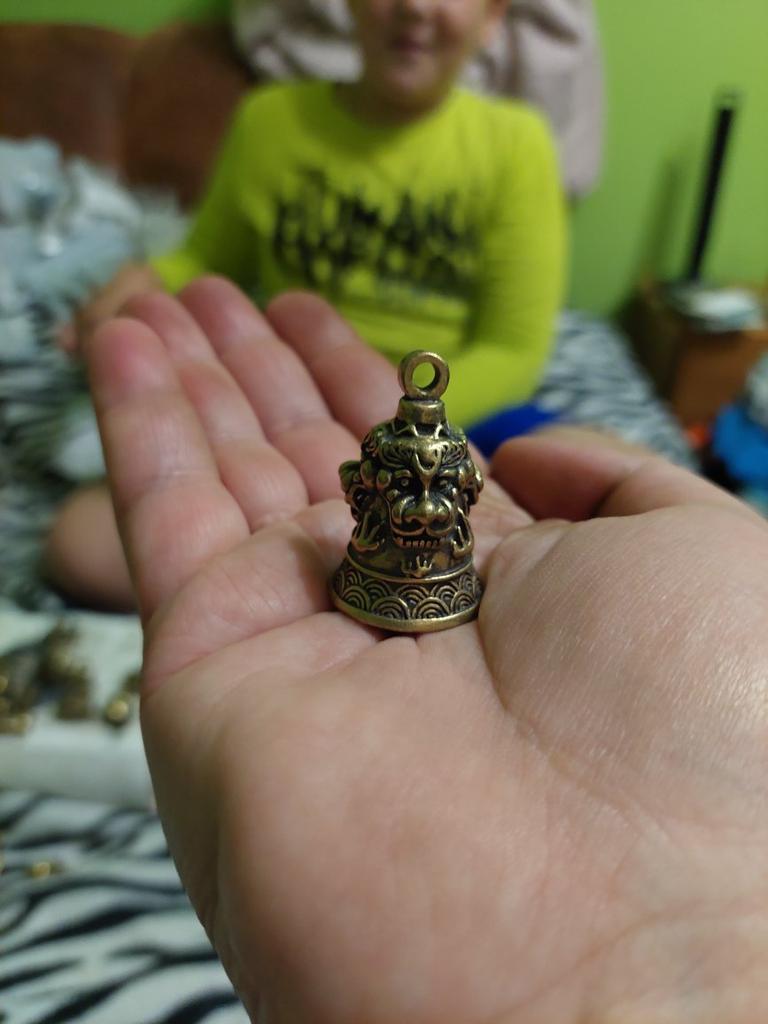 Dzwonek jest taki uroczy! Zamówiłem jeszcze dwa takie same) Uwielbiam numer trzy) Wyraźnie widać twarz lwa. Dźwięk dzwonka jest cichy. Tego właśnie chciałem) Dziękuję Joom 🥰