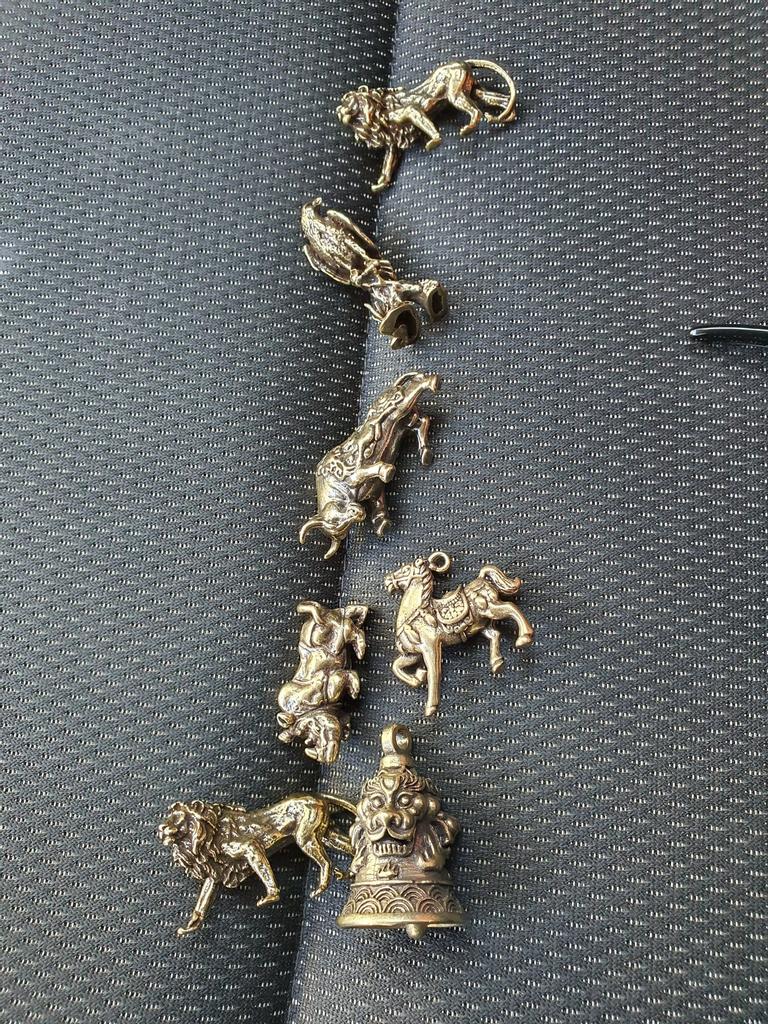 Miedziane trzy lwy dzwonek z głowicą małe ozdoby biurko Feng Shui dekoracje Retro mosiężny brelok zawieszki Home Decor do salonu