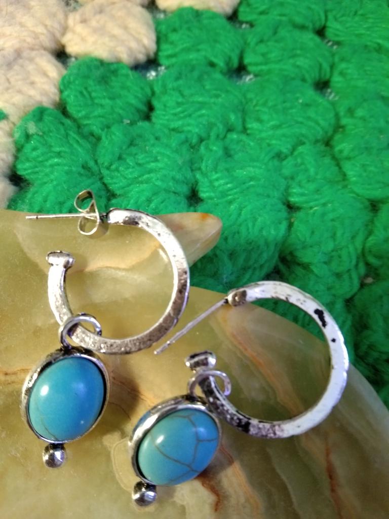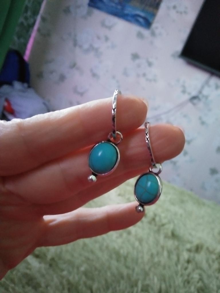 Vintage srebrny kolor turkusowy wąż obręcze Huggie wiszące kolczyki dla kobiet upuść kolczyk biżuteria