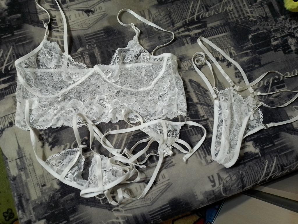 Podwiązki są baaaardzo duże, jakby z innego kompletu. Jakość taka sobie, tylko dlatego, że wszystko jest uszyte na chybił trafił, kawałki koronki wystają w różnych kierunkach.