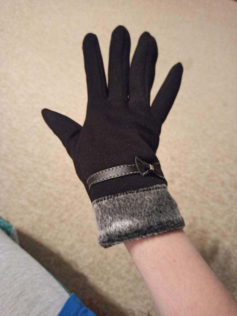 Rękawiczki dobrze leżą w dłoni, touchpady na palcach działają, od razu wypróbowałam na smartfonie, w sam raz na jesienną pogodę, w środku jest trochę futerka.
