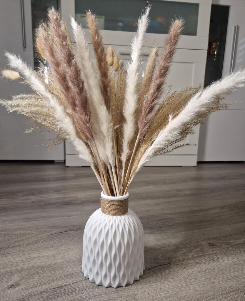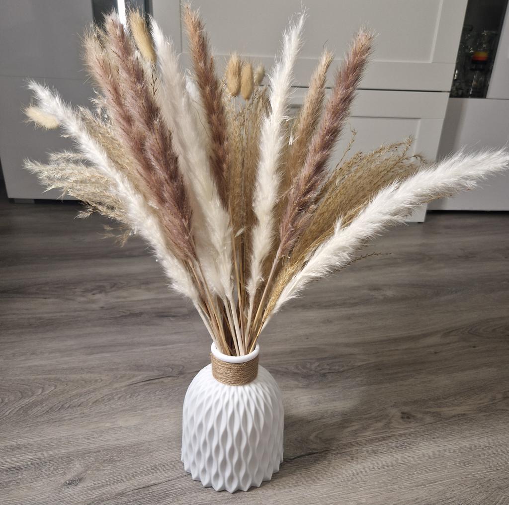 To wygląda bardzo fajnie. Nie duży rozmiar. Materiał wykonany jest z tworzywa sztucznego. Nadaje się do sztucznych kwiatów i suszonych kwiatów