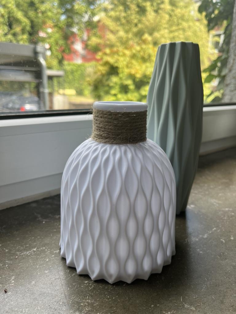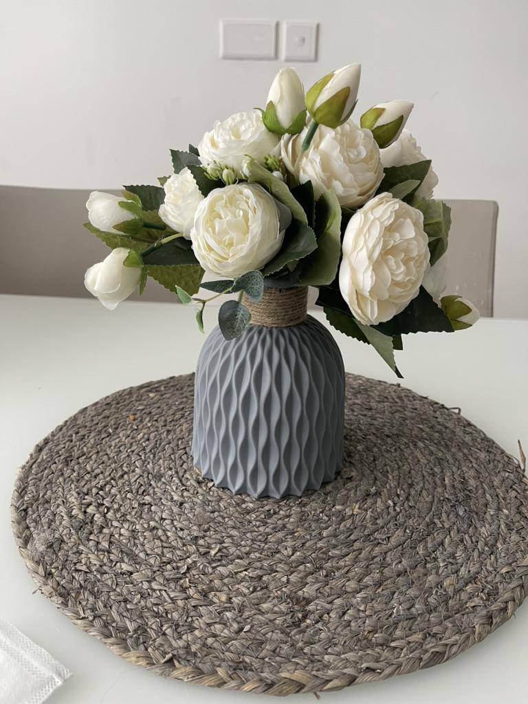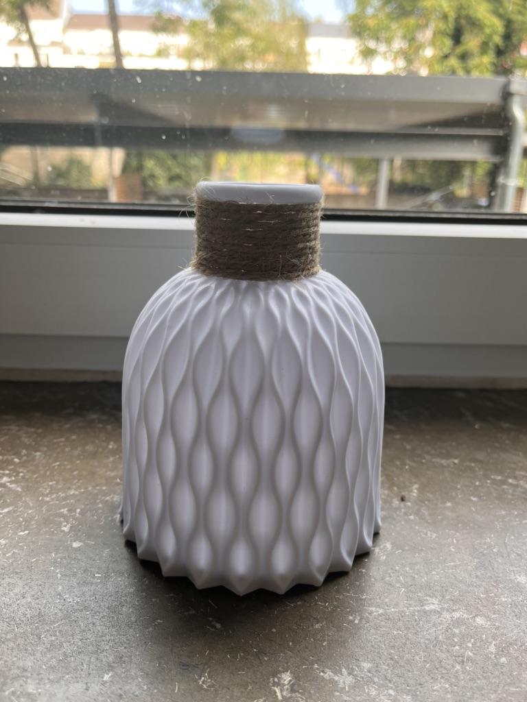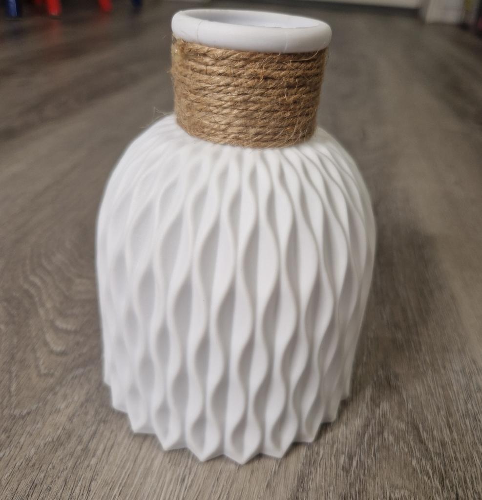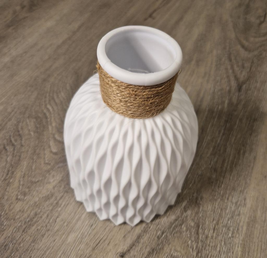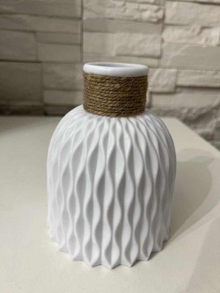 🧡Bardzo ładny wazon 🧡 Zapraszam do obserwowania mnie na Instagramie: @angela_jck 🧡Czas dostawy około 14 dni 🧡Najwyższa jakość, idealna do dekoracji. Wykonany jest z tworzywa sztucznego, posiada sznurek na szyję i występuje w dwóch kolorach: szarym i białym 😊 🧡Ładny detal ze sznurkiem, który dodaje mu trochę elegancji. 🧡Myślę, że jest idealny, jeśli masz także dzieci, bo nawet jeśli wazon spadnie na podłogę, nie stłucze się. 🧡Wniosek: Jasna rekomendacja zakupu, praktyczna i ładna do dekoracji 🧡