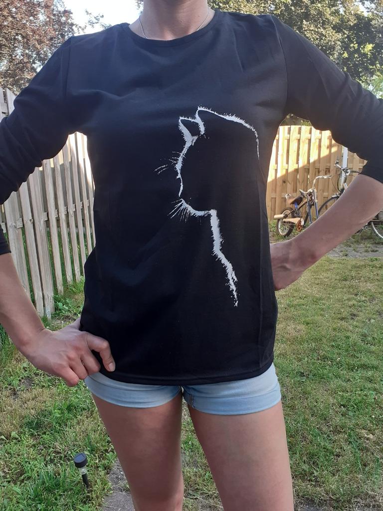 PU damska jesienno-zimowa bluzka luźny nadruk kota przyczynowy T-shirt z długim rękawem Top bluzka