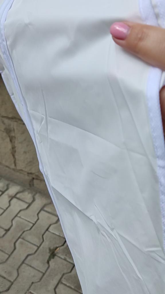 Okładka biała, wysokiej jakości, dość długa. Dobra do długich sukienek.