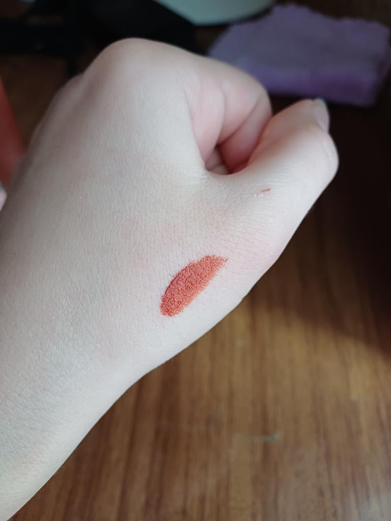 Odcień jest idealny, nakłada się go praktycznie bez łysinek, nie czuć go na ustach, a do tego lekko zabarwia się po zmyciu