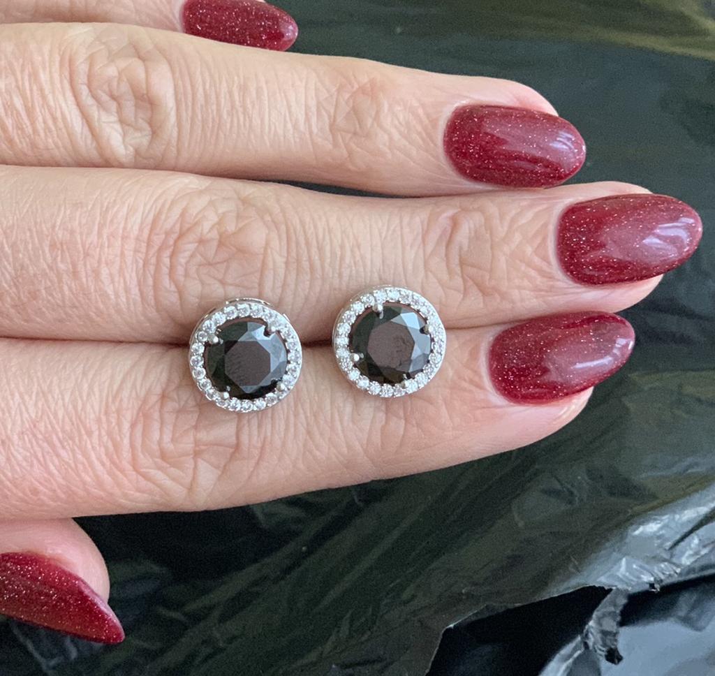 Różowe złoto kolor Cztery pazury Okrągły czarny kamień Kolczyki sztyfty Panna młoda Ślub Zaręczyny Biżuteria Prezenty
