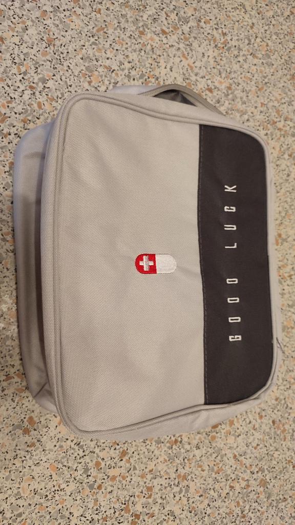 Dobra apteczka, wysokiej jakości okucia, miękkie ściany. Duża pojemność, wiele kieszeni wewnątrz na jednej ścianie. Przyszło za 3 tygodnie
