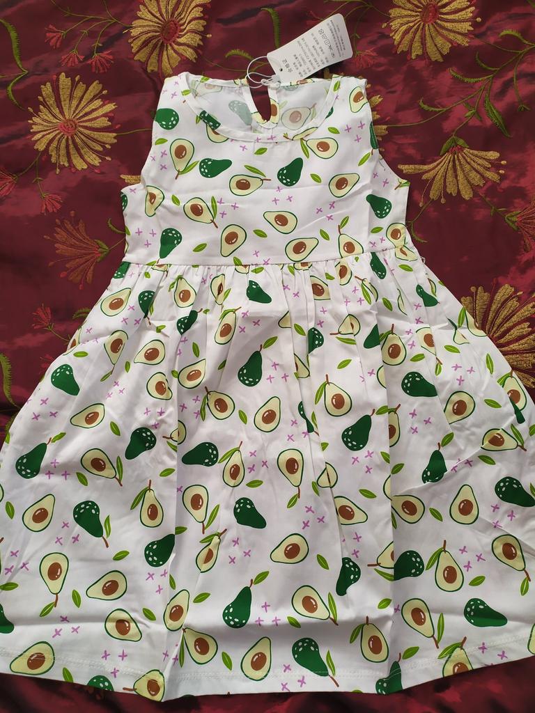 Sukienka jest w porządku. Bardzo ładny, jasny kolor. Czysta bawełniana tkanina, nieco szorstka jak pościel, latem będzie dobrze oddychać, ale w ogóle się nie rozciąga, przez co trudniej się ją ubiera, tylko z prawymi rękami w górze. Dobrze jest wziąć rozmiar dwa większe, aby nie było problemów z sukienką. Wzięliśmy 110 w wieku 3,5 roku, 12 kg, 90 cm wzrostu (teraz zwykle noszę 98), a rozmiar jest bardzo ok, pasuje swobodnie, ale też w nim nie pływa. Cena/jakość odpowiada. Widzimy jak kolor i rozmiar zachowują się latem po kilku praniach.