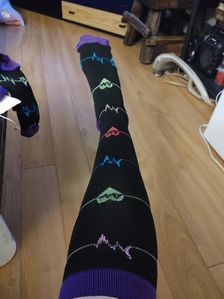 SUPER KOLOROWE SKARPETKI KOMPRESYJNE Bardzo kolorowe kompresyjne skarpetki sportowe, uwielbiam je 😍, idealnie nadają się do biegania 🏃♀️, pomagają poprawić przepływ krwi, zmniejszają bóle mięśni i zapobiegają utracie ciepła. Polecam zapoznać się z opisem producenta, aby móc prawidłowo dobrać rozmiar.. Mają dużo modeli do wyboru, myślę, że zaopatrzę się w inne w innym kolorze. Polecamy 💯. Przybycie zajęło 3 tygodnie i dotarło w bardzo dobrym stanie..