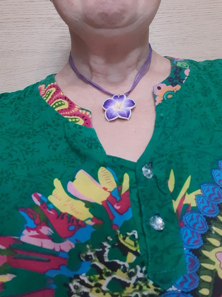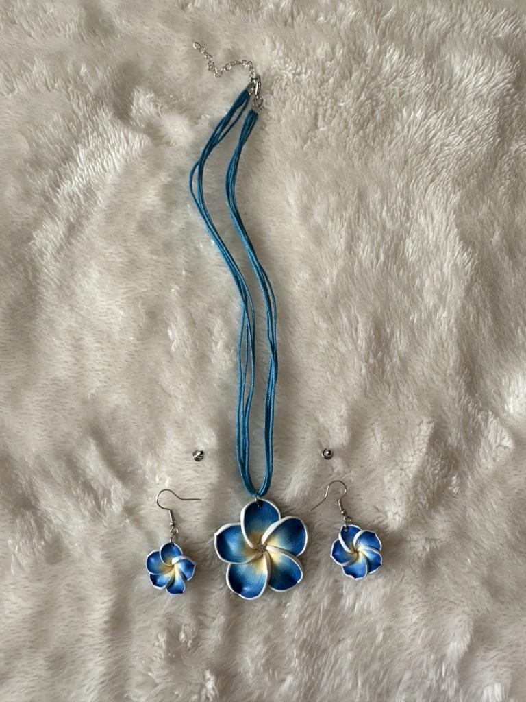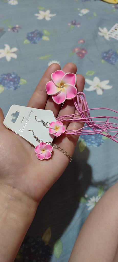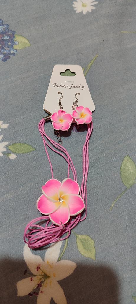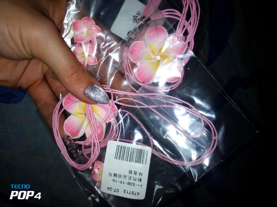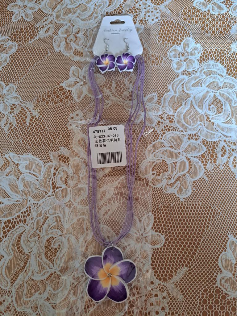 Bardzo piękny i kolorowy naszyjnik, ale kiepskiej jakości. Kolczyki nie nadają się do użytku, ponieważ haczyk został przesunięty do tyłu, więc po założeniu kolczyka na kwiatek jest skierowany do tyłu