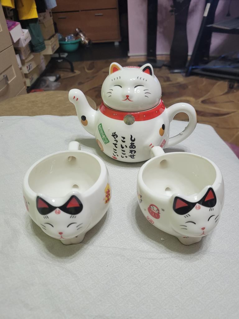 Śliczne japoński kot na szczęście porcelanowy zestaw do herbaty kreatywny maneki neko ceramiczny kubek na herbatę czajnik z sitkiem biurowy czajniczek kubek na wodę
