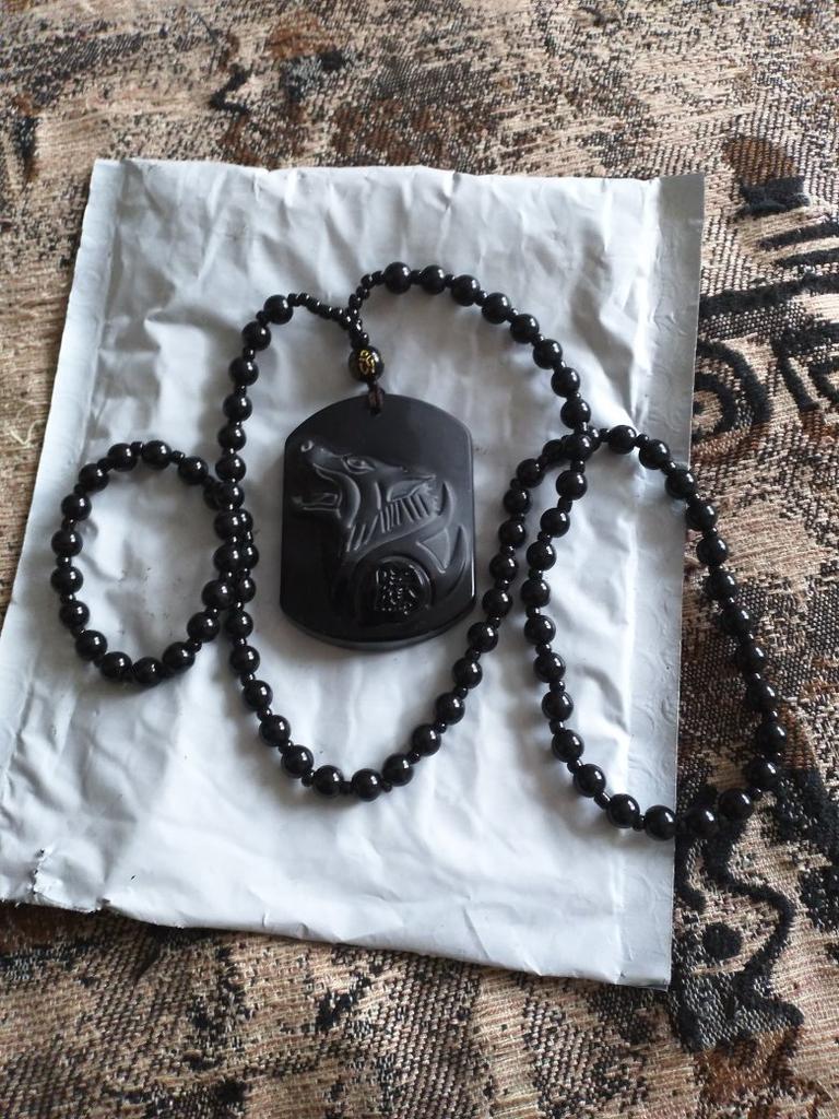 Natural Black Obsydian Carving Wolf Head Amulet Wisiorek Obsydian Błogosławieństwo Szczęście Wisiorek