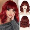 MERISIHAIR Krótkie ciemnozielone falowane peruki z grzywką, czarne mieszane zielone krótkie boby falowane kręcone peruki dla kobiet, syntetyczne peruki cosplay party realistyczne dla dziewcząt