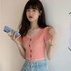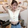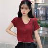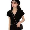 Letni Dziewczęcy Seksowny T-shirt z Dekoltem V Jednolity Kolor Krótki Rękaw Dzianinowe Topy Styl Preppy Dopasowany T-shirt