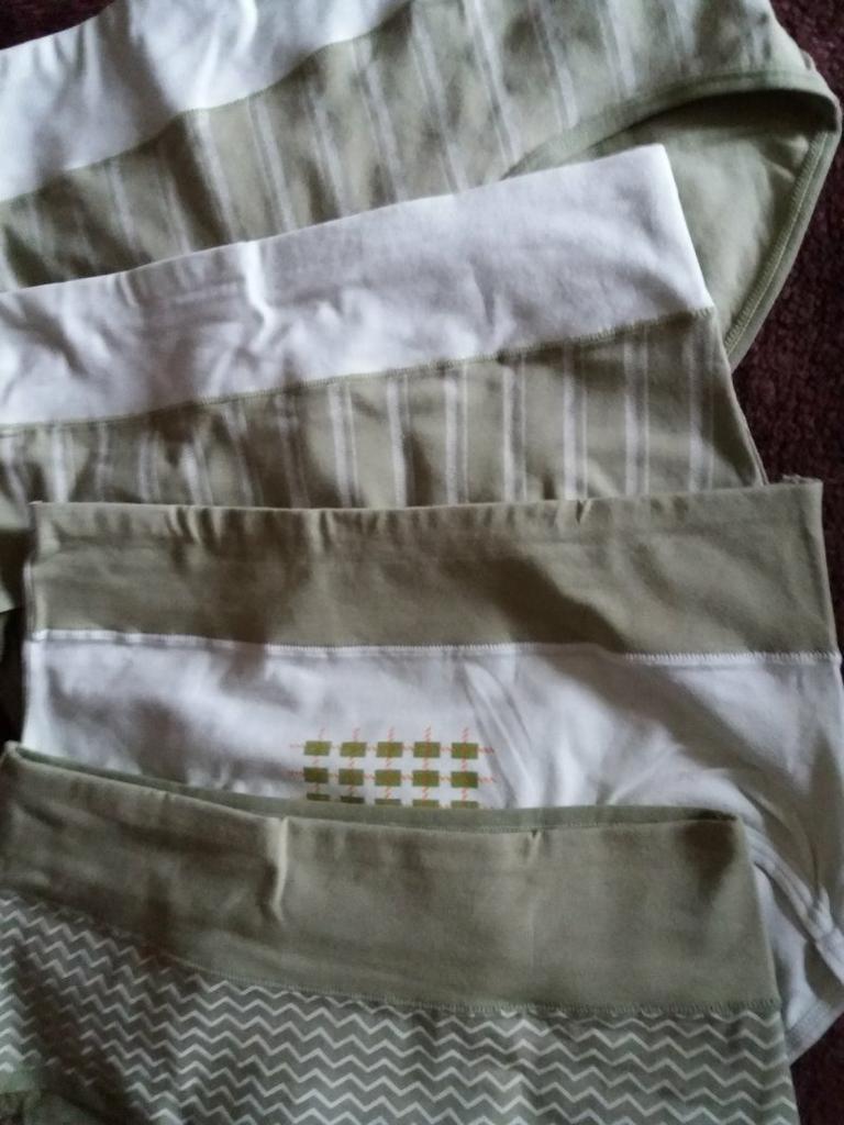 Nie są tak skompletowania jak na zdjęciu . Brakuje majtek w kratkę . Bardzo słabo się rozciągają . Po za tym dostałam 4 pary majtek w różnych rozmiarach .