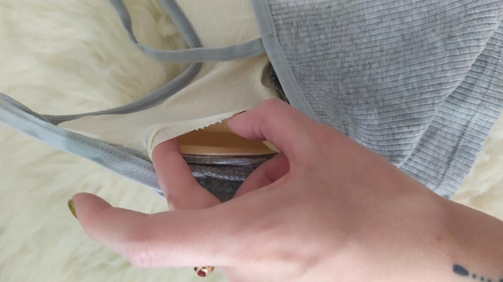 Bluzka bardzo ładna! I seksi, na mój biust niestety za duży aby nosić bez stanika bo nie trzyma miseczki D. Natomiast to nie problem. Wystarczy wyjąć poduszki i nosić normalnie 😇