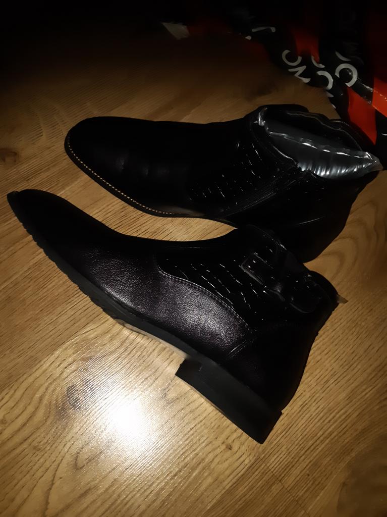 Bardzo ładne skórzane buty, futrzane wnętrze na zimę, bardzo dobrej jakości i wygodne w noszeniu. Przede wszystkim po prostu weź swój rozmiar, mam 44 lata i są nieco większe, ale dobrze na mnie pasują. Nie ma potrzeby brać rozmiaru powyżej. Bardzo ładny wygląd, zadowolony, dziękuję serdecznie Damien.