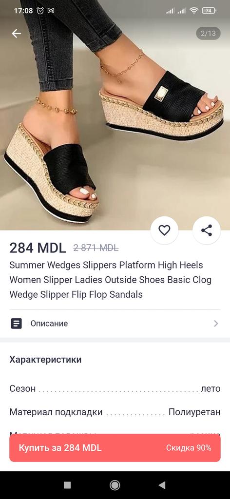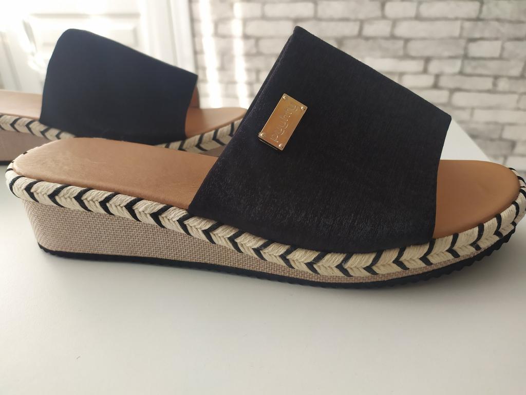 Letnie kapcie, na platformie, bardzo wygodne do chodzenia, mam mały problem z jedną stroną kapcia, odpadła, więc musiałam ją przykleić, a na poziomie podeszwy, która jest gumowa, musiałam je wysłać do szewca, aby dodał bardziej solidną podeszwę, poza tym polecam ten artykuł, bez zarzutu
