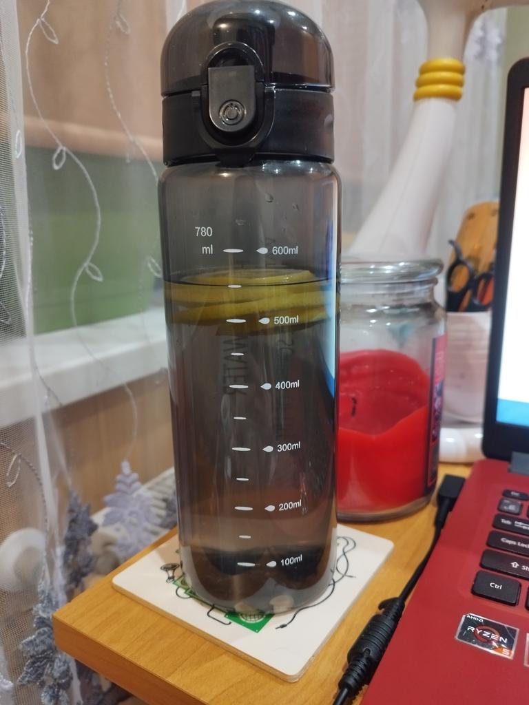 ⭐ Przenośna butelka na wodę i napoje 🥤 🔅 Wykonane z dobrego materiału, dzięki silikonowej wkładce na wieczku, woda nie przepuszcza, nie powstają żadne obce zapachy. 🔅 Rozmiar 23*7 cm. 🔅 Rzeczywista objętość to 700 ml. 📦 Zamówione 12.09, przesyłka odebrana 22.09 na Ukrainę, Zaporoże. Dziękuję sprzedawcy, dziękuję Joom❣ Zdecydowanie polecam👍🏻