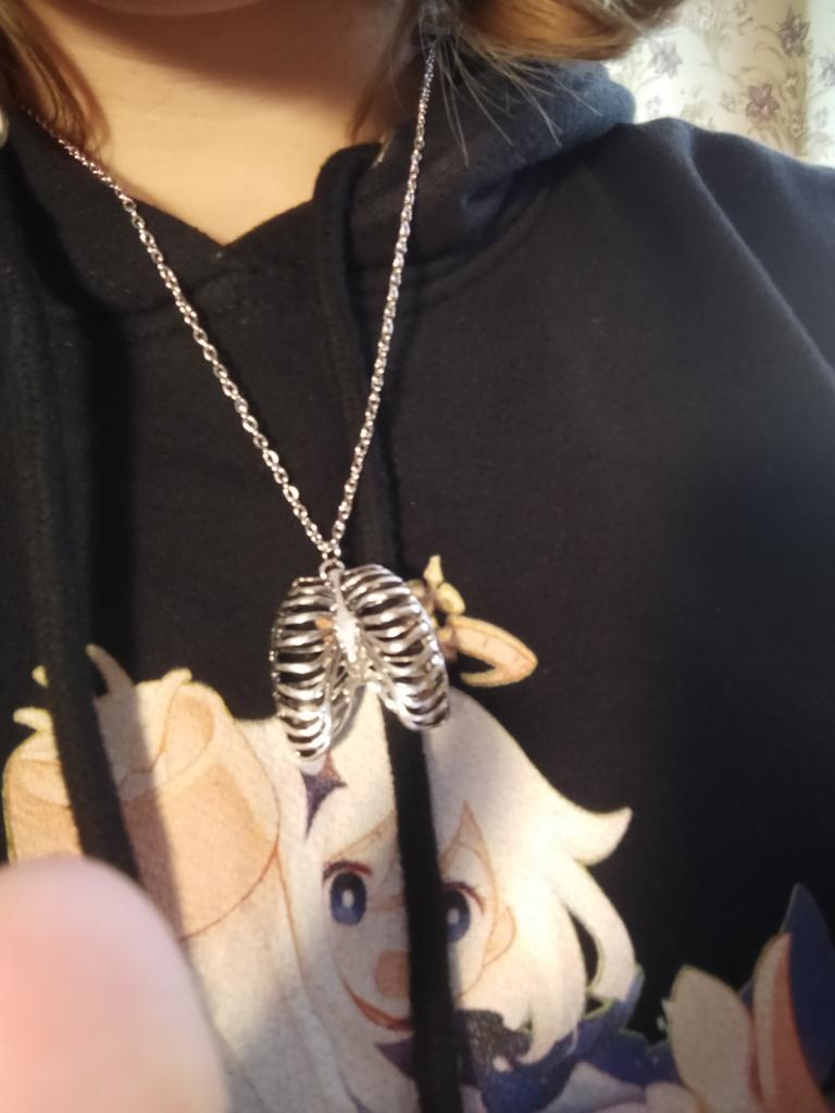 Przedmiot przyszedł nieuszkodzony, ale po noszeniu go przez tydzień bez przerwy (bez ciągnięcia ani szarpania), środkowa część po prostu odpadła + zabarwił mi ciało :( 3 gwiazdki