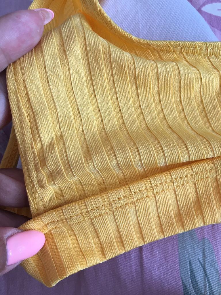 Dostawa nie była zbyt długa. Materiał jest bardzo ładny i porządnie wykonany. Jednak top jest za mały na mój biust. Mimo że zamówiłam duży rozmiar, moje piersi nie mieszczą się. Szkoda ! Bardzo podoba mi się ten kolor.