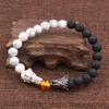 Naturalna czarna lawa i biały howlit bransoletka z koralików z kamienia Pulseira Masculina biżuteria męska Buddha Dragon bransoletka z koralików dla kobiet