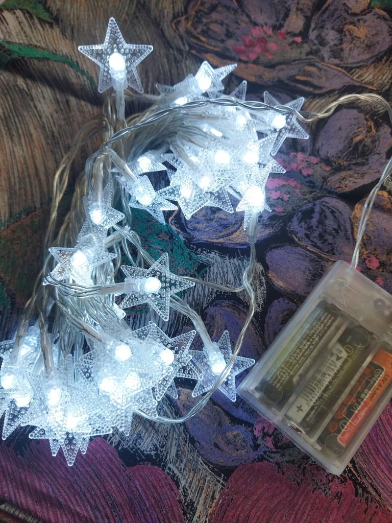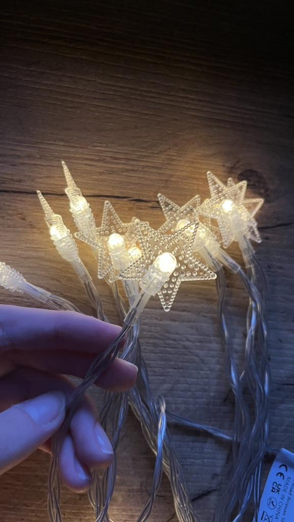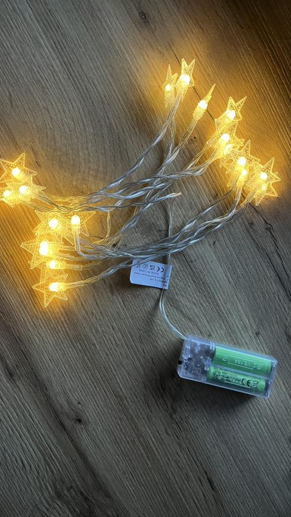 Nie świeci zbyt jasno, nie wystarczy do czytania, ale jako zwykła ozdoba do stworzenia atmosfery będzie odpowiednia. W wersji zasilanej bateriami potrzebne są dwie sztuki, nie są dołączone w zestawie.