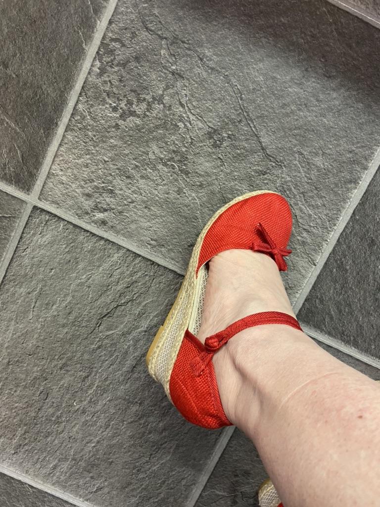 Zgrabny, bardzo lekki, elegancki, trwały pasek, elegancka kokardka. Tkanina nie obciera stopy. Po prostu pięknie.