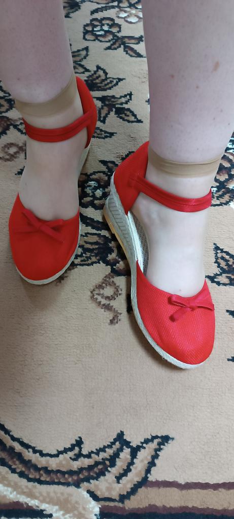 Piękne buty, ten rozmiar idealnie pasuje do mojej stopy 23,5 cm, wyglądają bardzo pięknie na moich stopach, są wygodne, tylko czas pokaże, jak praktyczne będą w noszeniu, teraz jest zima, więc nic nie mogę powiedzieć. Cóż, chyba będę musiała je dość często prać, ponieważ materiał i cholewka i platforma są wykończone plecionką, więc nie można po prostu zmyć kurzu myjką, tylko pranie, jak to wytrzymają pokaże eksploatację tych butów, czy szybko stracą swój wygląd. Naprawdę chcę, żeby nosiły się długo i pięknie, naprawdę mi się podobają, mój styl, delikatne, kobiece, słodkie i urocze buty.
