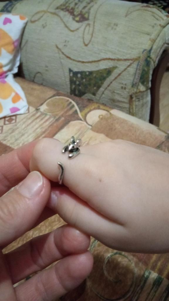 Pierścionek jest niezwykle ładny, wygodnie leży na palcu. Kufa różni się nieco od pokazanego na zdjęciu, ale podoba mi się jeszcze bardziej. Będzie pasować nawet do rączek małego dziecka, takich jak moja. Kupiony za 36 UAH. polecam. edytuję. Jeśli nie chcesz go nosić na co dzień, śmiało możesz go kupić. Jeśli nosisz go na co dzień, to z czasem najbardziej wystające powierzchnie zaczną ścierać się do miedzianego koloru, a pierścionek nie będzie już taki ładny. Taki sam srebrny znalazłem w Google za 300 UAH.