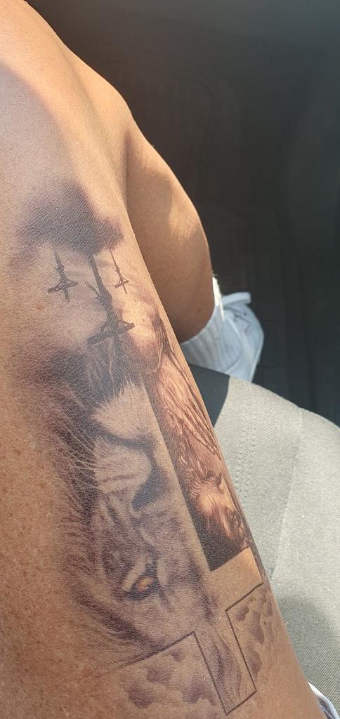 Krzyż lew tymczasowe tatuaże dla kobiet mężczyzn dzieci dorosły czarny wąż bóg tatuaże realistyczne fałszywe zło Demon 3D kwiat tatuaż naklejki