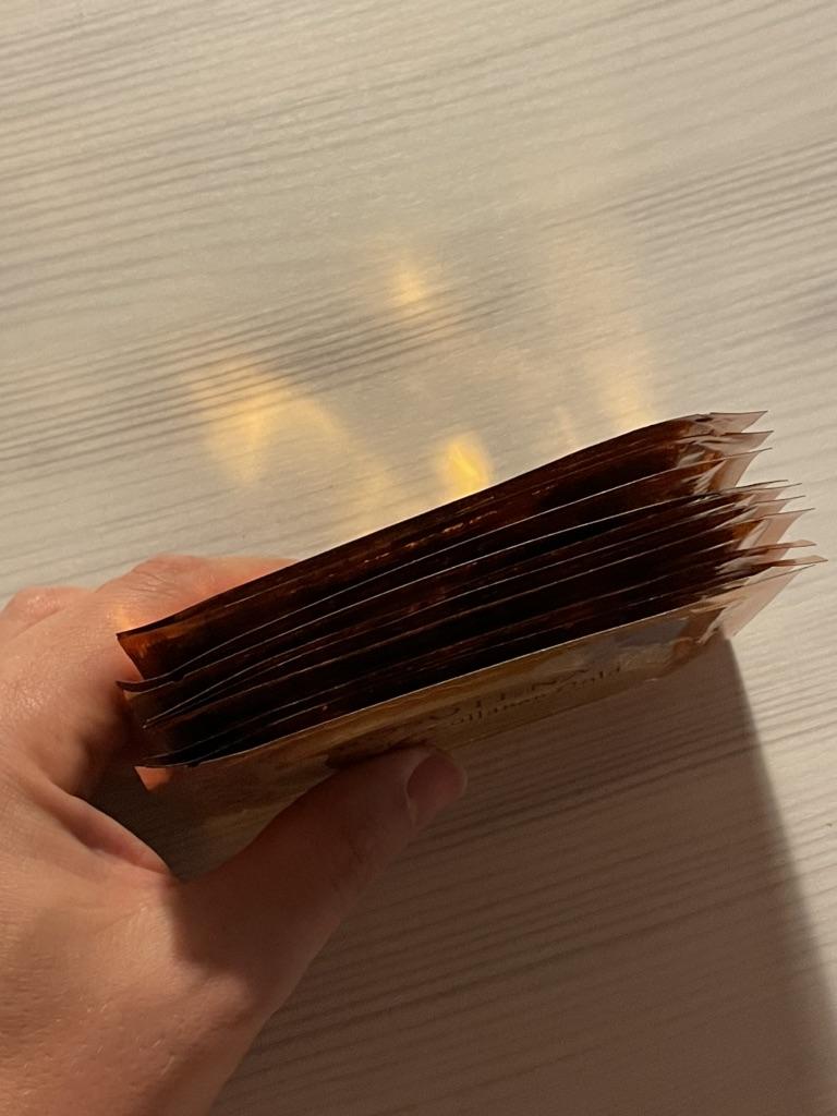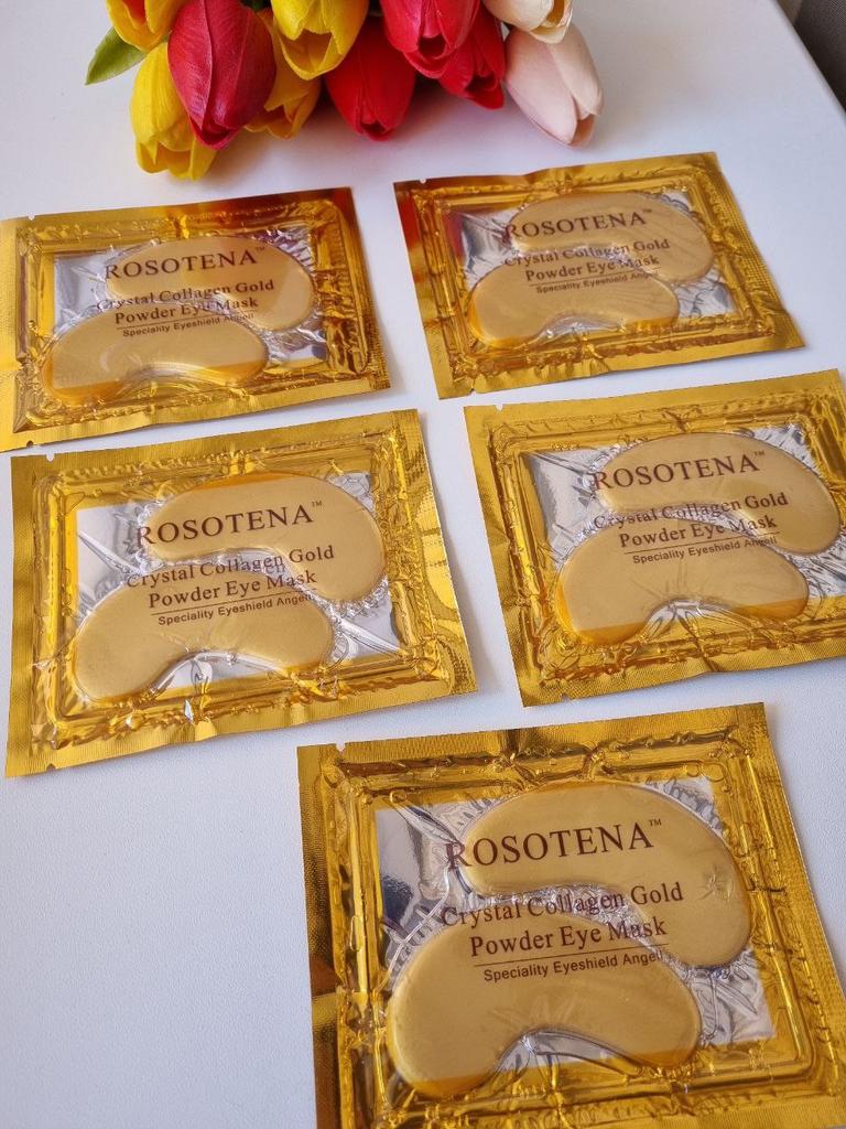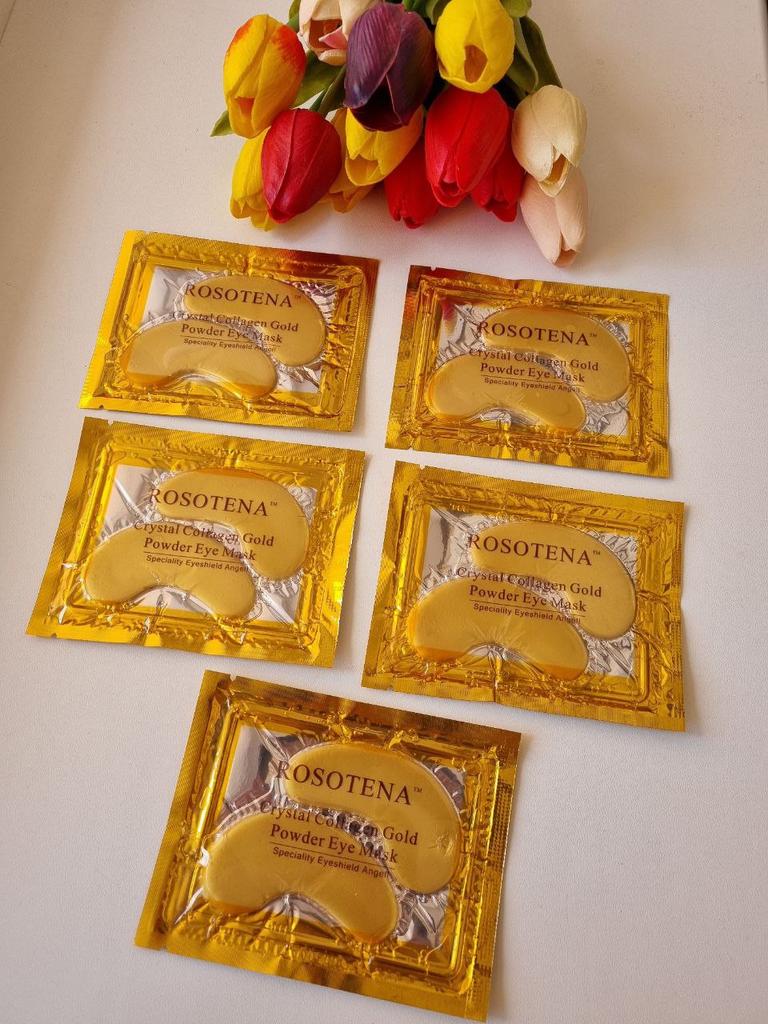Testowałam już tego typu płatki pod oczy, tyle że w kolorze białym, jestem nim totalnie zachwycona! Łatwo się je zakłada i dobrze trzyma ! Trzeba pomyśleć o ich zabezpieczeniu, a następnie ustawieniu ich pionowo w lodówce, aby miały kilka zastosowań, a także zapewniały lepszy efekt przeciwdziałający cieniom.. Dotyk złota to przede wszystkim zabawny dodatek do koloru 😊.