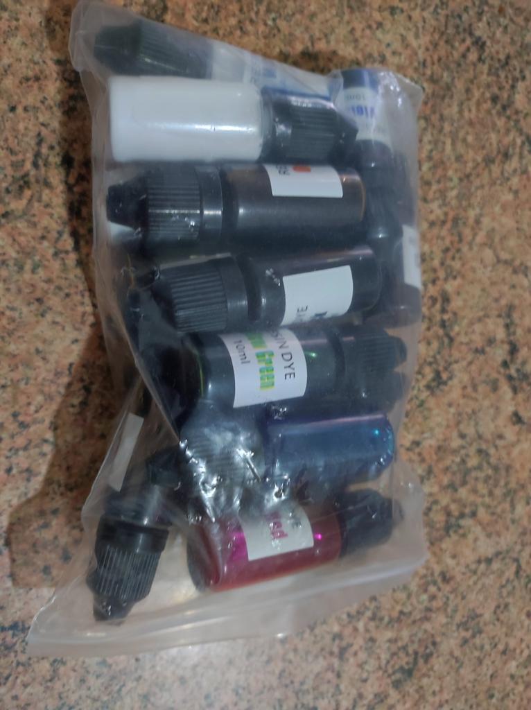 Wszystko przyszło ładnie zapakowane w pudełko, nic nie wyciekło, 23 słoiczki, w tym 4 białe. Nie znam jeszcze jakości tuszu, jak go przetestować - uzupełnię recenzję