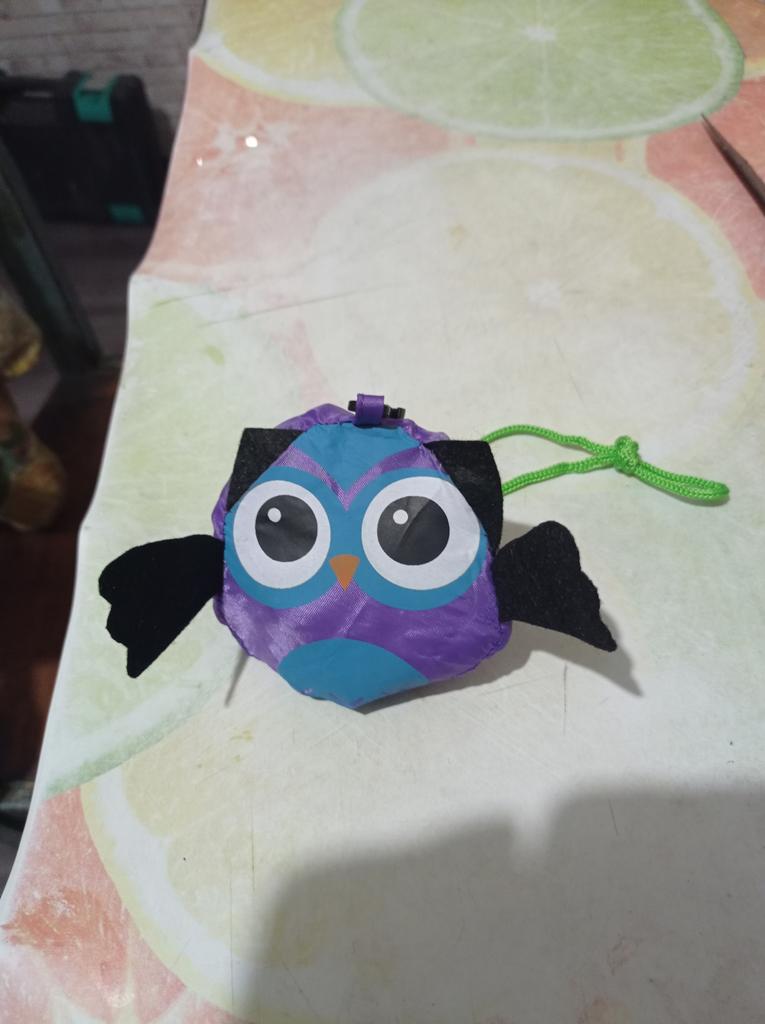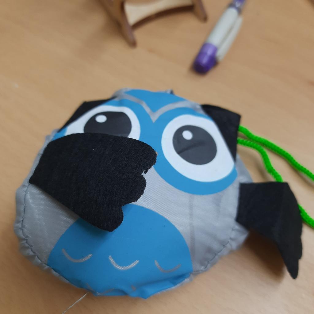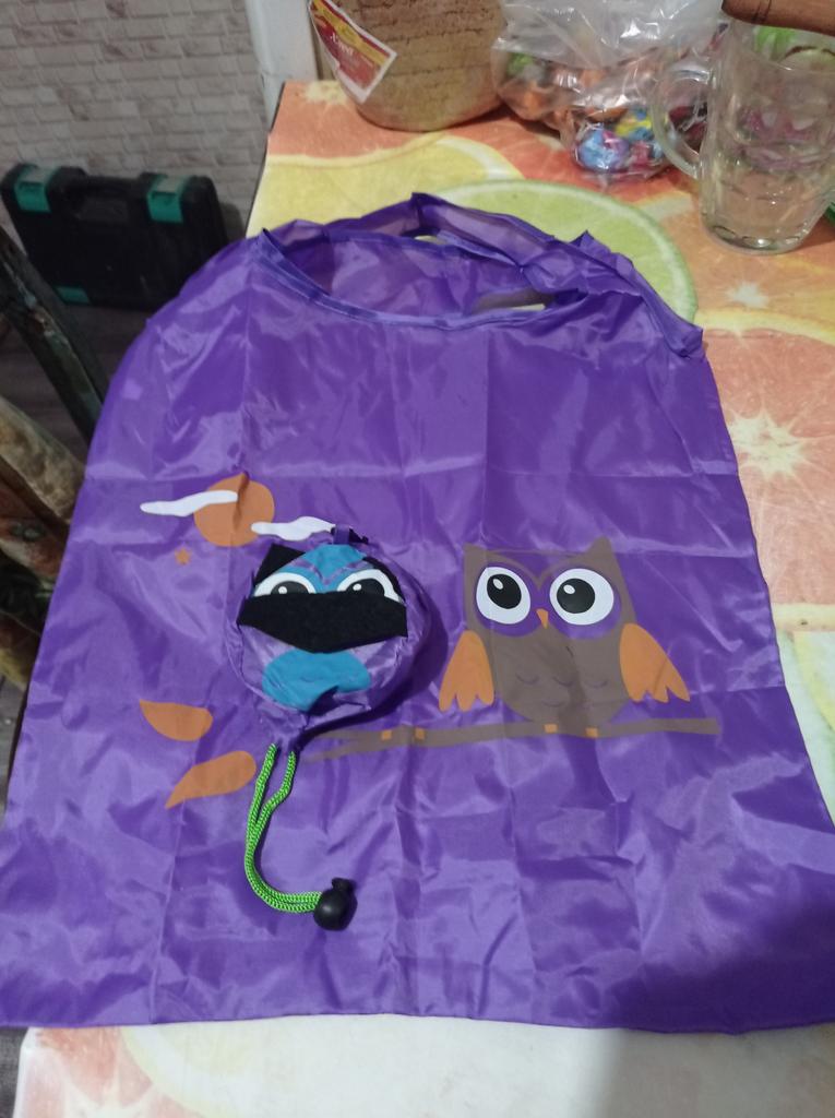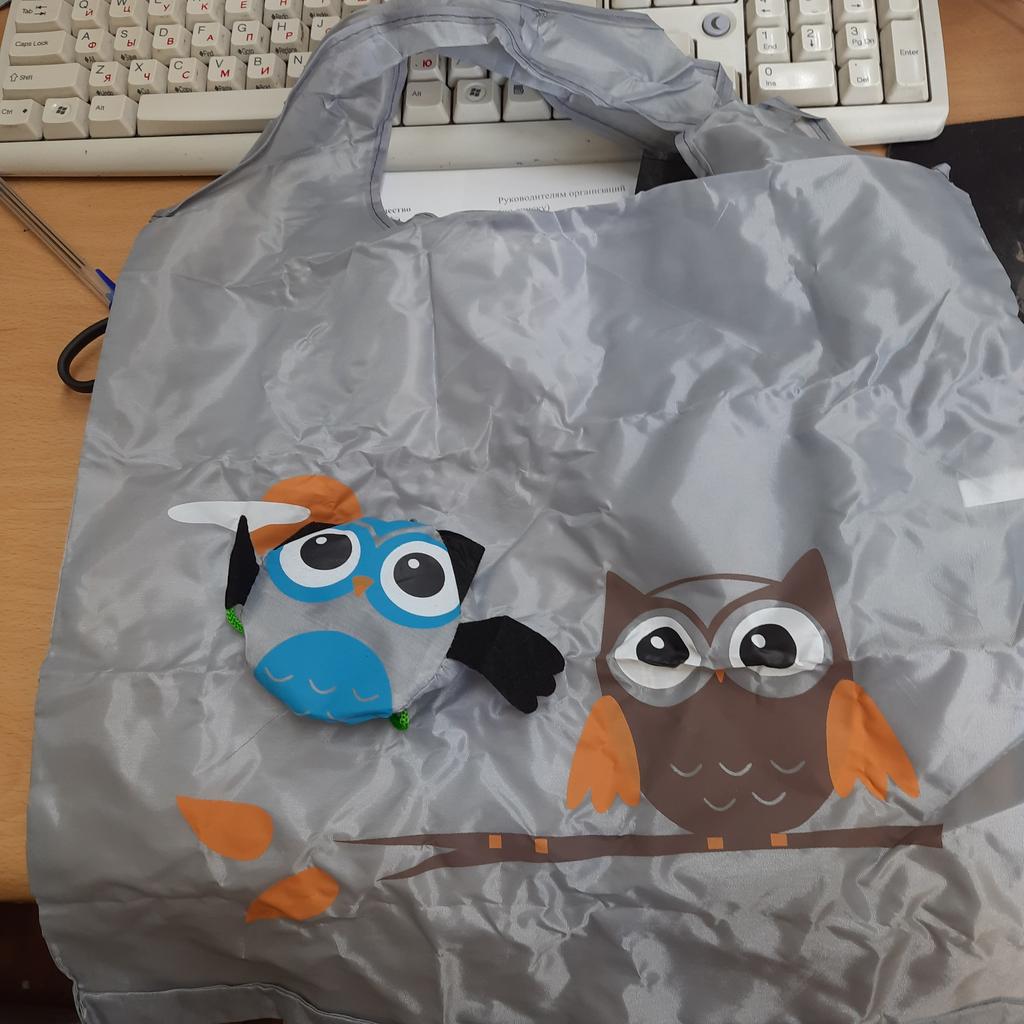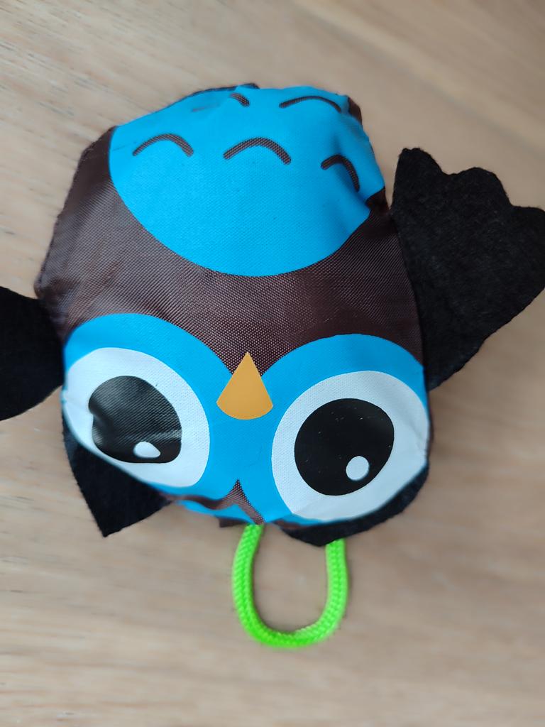Balonowa torba na zakupy. Składa się do małej torby w kształcie jakiejś sowy lub czegoś takiego. Torba średniej wielkości. Zamówiłam w kolorze beżowym, przyszedł kolor niebieski (dobrałam specjalnie pod kolor torebki), szkoda, teraz już nigdzie nie pasuje.