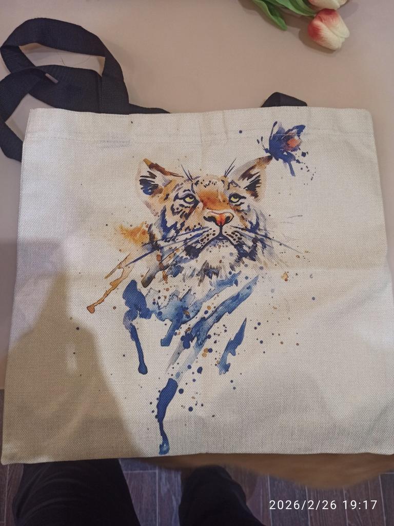 Bardzo ładna torba . Super obraz na torbie . Rączki długie. Można zakładać na ramię..Szybka wysyłka. Polecam sklep i sprzedawcę. Dziękuję.